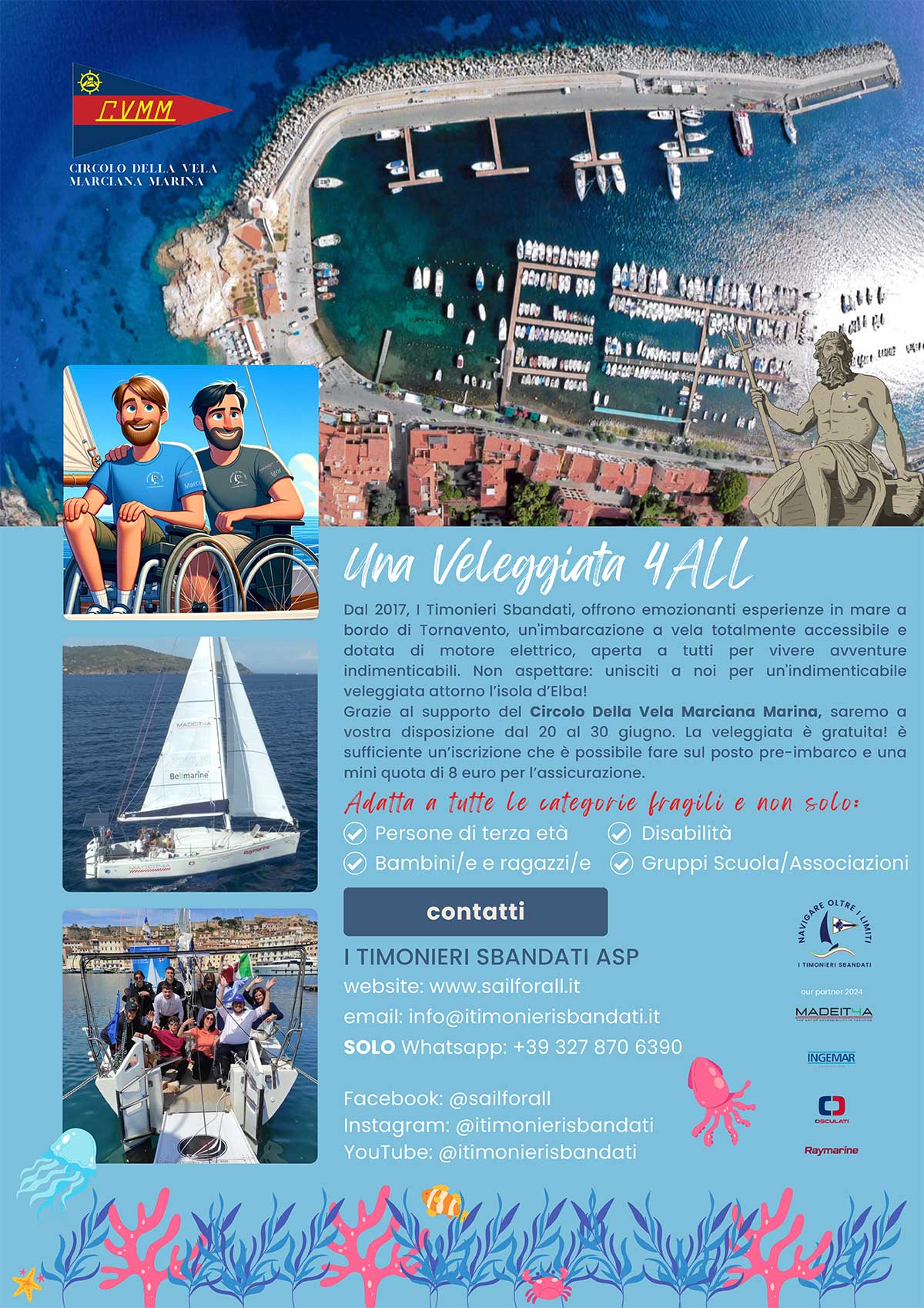 Del 20 al 30 de junio, el Circolo della Vela Marciana Marina acogerá a los regatistas Marco Rossato e Igor Macera de Timonieri Sbandati ASD, la asociación que promueve la accesibilidad de los deportes. para todos, especialmente para la navegación.